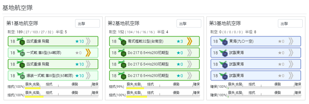 友軍のお陰でS勝利が安定できたので基地航空隊を1部隊他に割いても良かったかもしれないです。