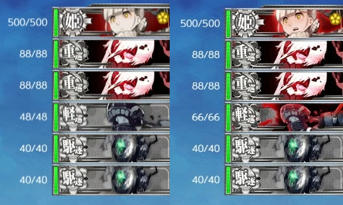 道中の通常マスが何気に鬼門ですね。ラスダン以降ボス前マスの撤退連続4回くらいありました。(警戒陣なのになぜか当てられます)敵駆逐艦が回避・火力が高くて同行以上だと重巡と空母がワンパンされました。