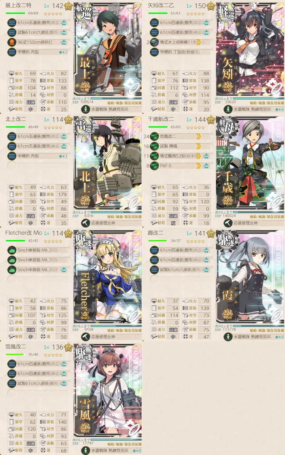 管理人さんのを参考に、全員メインを採用(北上、矢矧、最上はサブあり)