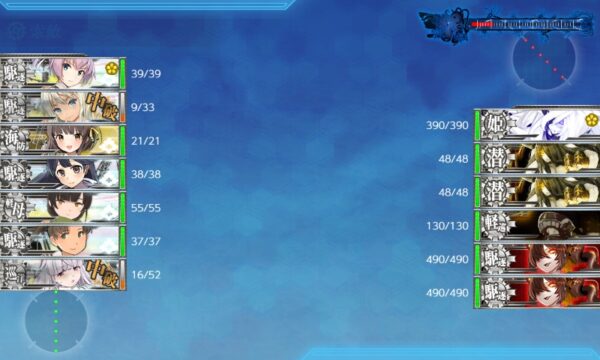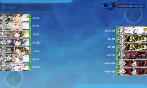 第五海域の第一ゲージは、潜水棲姫率いる艦隊との戦闘です。