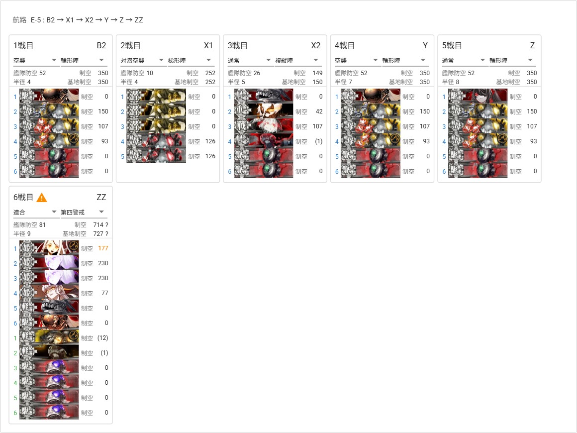 | ※E5-4は、【連合艦隊】【決戦艦隊】何れも攻略例があります。 | ||||