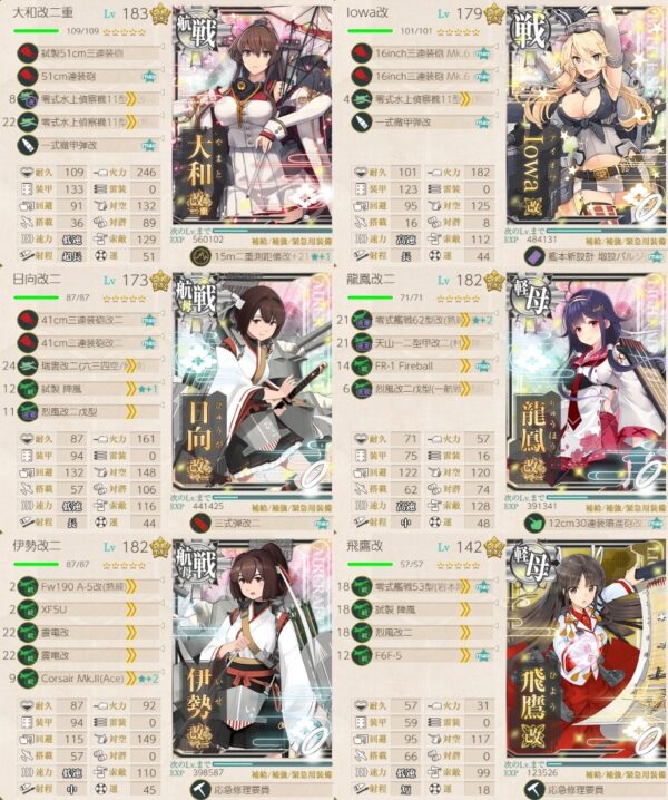 また、特に龍鳳が2隻いる場合は龍鳳を第二艦隊に置くことも考えられます。