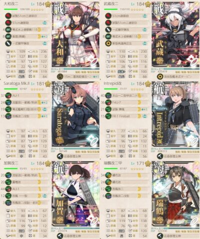 ・大和は火力を最大化するために、A,B両方の特効偵察機を採用しています。