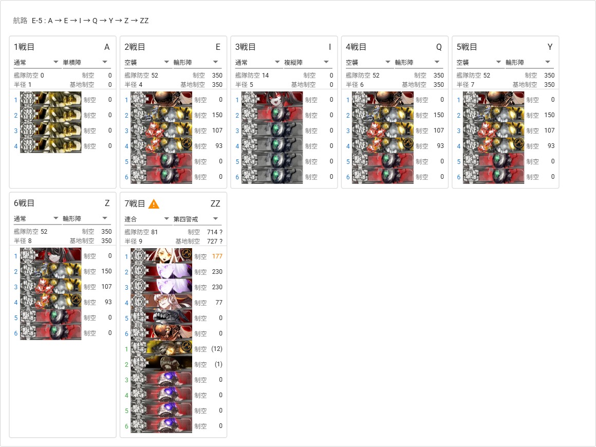 戦闘行動半径 A:潜水(1) E:空襲(4) I:通常(5) Q:空襲(6) Y:空襲(7) Z:通常(8) ZZ:ボス(9)