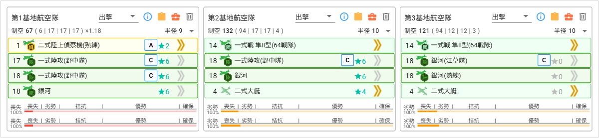| 基地航空隊 | 3部隊使用可能・3部隊出撃可能 |