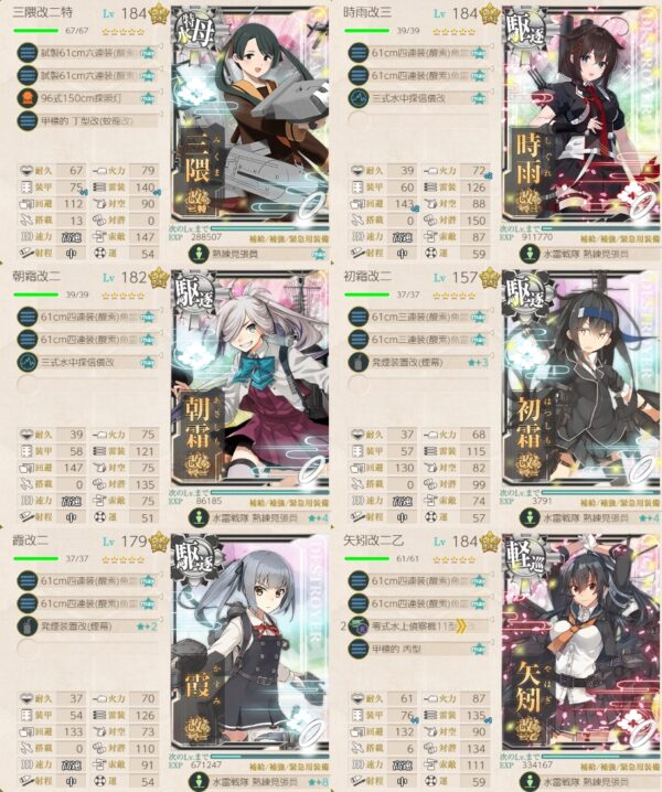 第一艦隊に対空艦を入れている関係で、第二艦隊の駆逐枠に余裕があります。