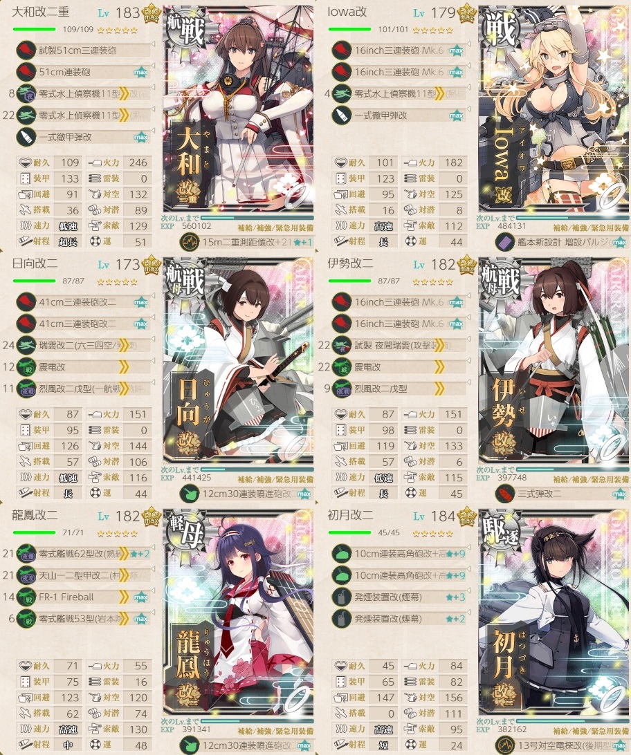 ・Iowaは道中の安定も意識し、電探ではなく特効補正のある偵察機を採用しています。