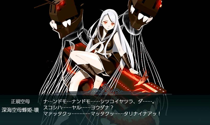 | 【装甲破砕】 [装甲-55?]深海空母蜂姫 全形態? [装甲-36]軽巡ツ級flagship, 軽巡ト級flagship, 空母棲姫II, 駆逐ラ級(初期型), 駆逐ラ級ζ-壊, 軽巡ム級, 巡洋戦艦水姫 |