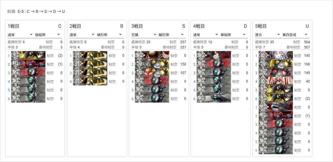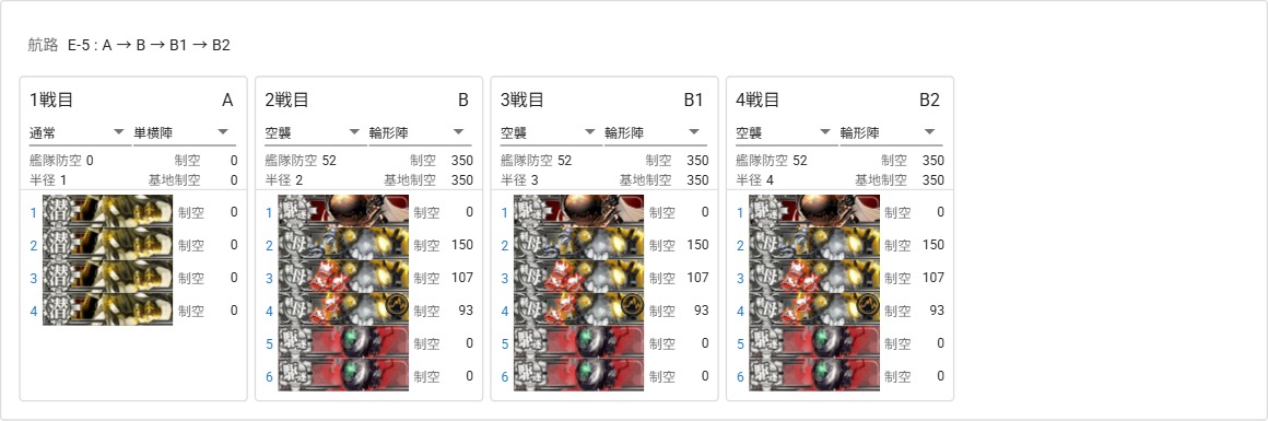 | ※E5-4は、【連合艦隊】【決戦艦隊】何れも攻略例があります。 | ||||