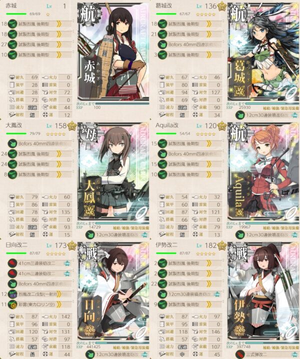 正規空母足りなかったのでレベル1の正規空母を起用しています。