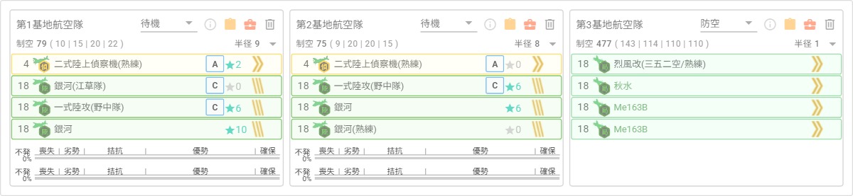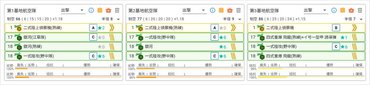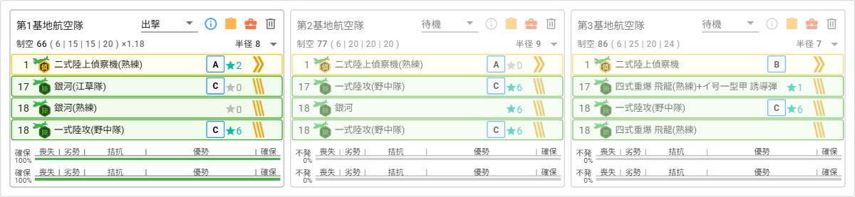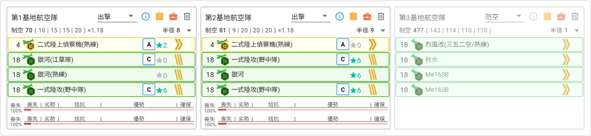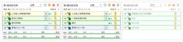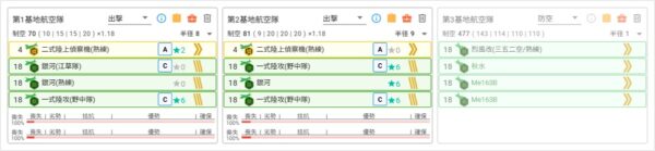 | 基地航空隊 | 3部隊使用可能・3部隊出撃可能 |