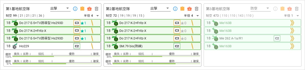 | 基地航空隊 | 2部隊使用可能・2部隊出撃可能 |