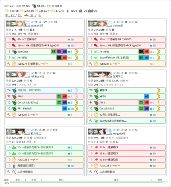 ●ボスマス制空権確保に制空値510程度を目安に調整(画像で491)