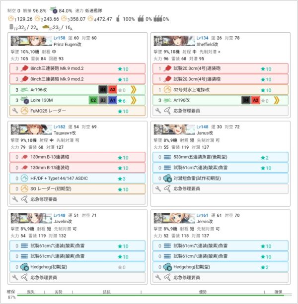 攻略時と異なり第二艦隊に巡洋艦を置く形にしています。