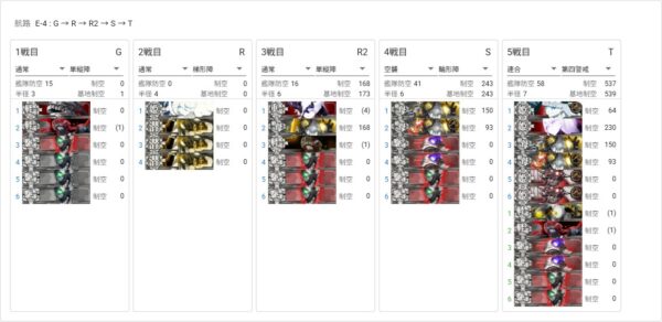 戦闘行動半径 G:通常(3) R:潜水(4) R2:通常(6) S:空襲(6) T:ボス(7)