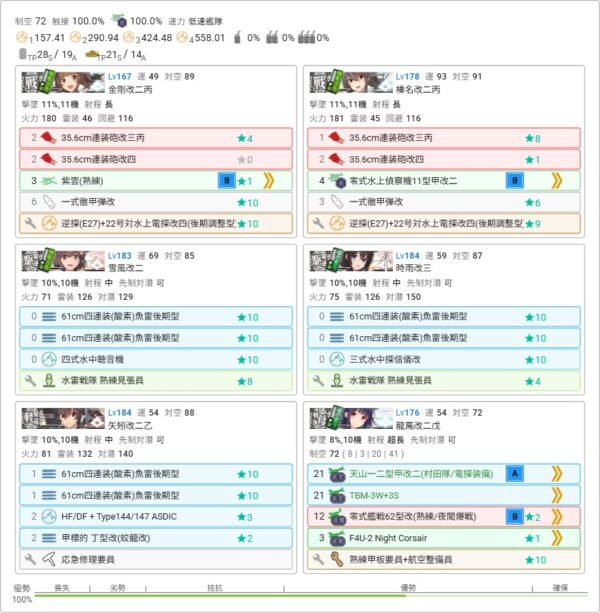 | 【基地装備】陸攻A 二式陸上偵察機(熟練) 四式戦 疾風 深山改 零式艦戦62型改(熟練/夜間爆戦) | 1.14 | 1.09 | 1.07 | 1.07 |