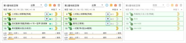 | 基地航空隊 | 3部隊使用可能・2部隊出撃可能 |