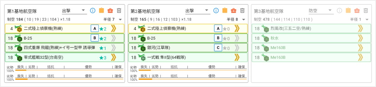 | 基地航空隊 | 3部隊使用可能・2部隊出撃可能 |