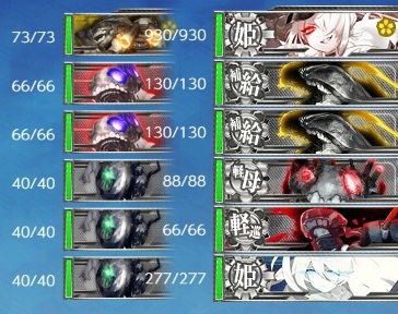 | 【装甲破砕】N/T/Zマス [装甲-48]戦標船改装棲姫 各形態 [装甲-36]軽巡ツ級, 軽巡ト級flagship, 軽母ヌ級改elite, 駆逐ナ級IIe(量産型)elite, 潜水新棲姫flagship |