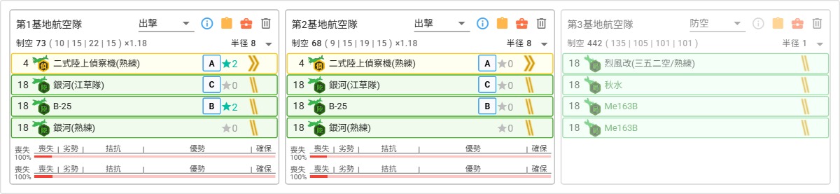 | 基地航空隊 | 3部隊使用可能・2部隊出撃可能 |