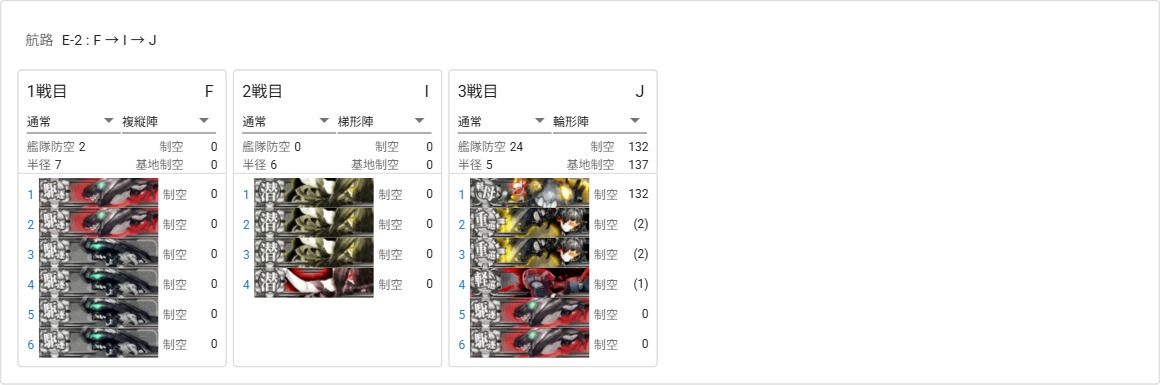うちは戦艦1 正空1 軽空1 軽巡1 駆逐艦3 で Jマスまで最短ルートでした (Gを経由せず)