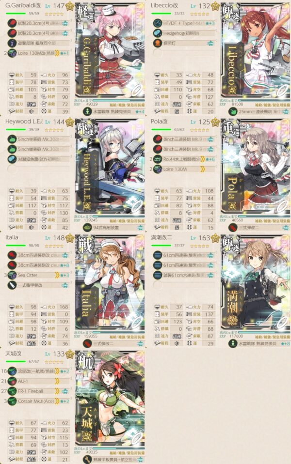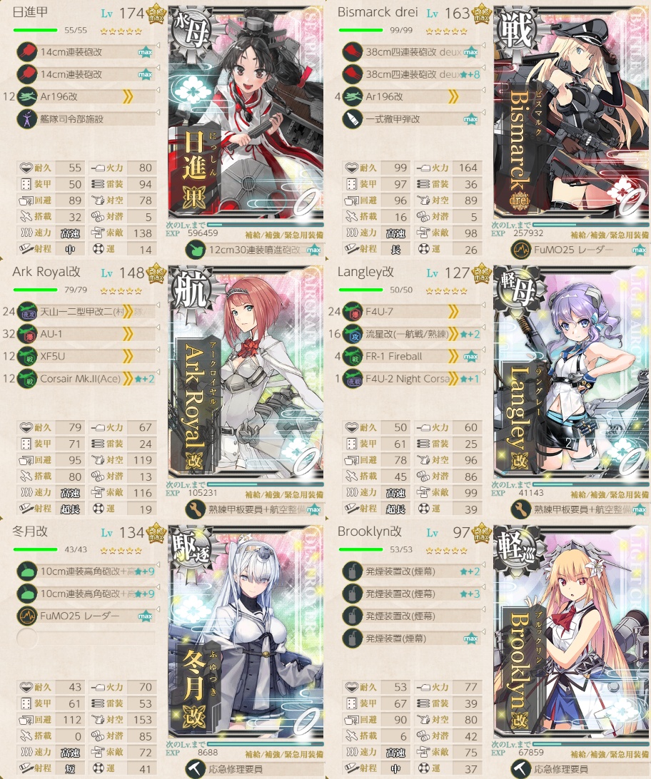 ・Vマスでナ級が出てくるのでその開幕雷撃対策に想定。3重煙幕発動率を意識します。