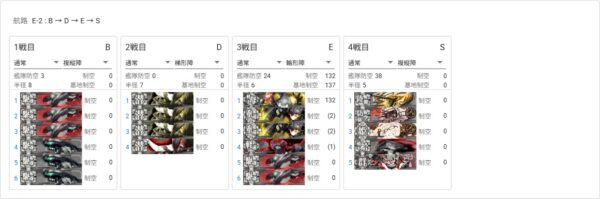 陣形選択例:警戒陣→警戒陣→輪形陣→警戒陣→単縦陣