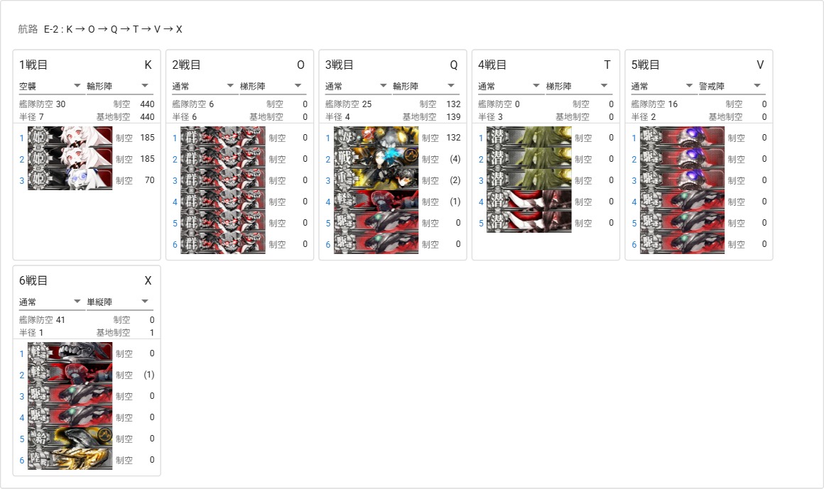 【KOPQTVWX】(K:空襲 O:Sボート Q:通常 T:潜水 V:駆逐 X:ボス)