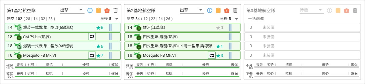 基地航空隊2部隊使用可能・2部隊出撃可能