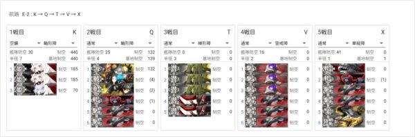 【KPQTVWX】(K:空襲 Q:通常 T:潜水 V:駆逐 X:ボス(2回))