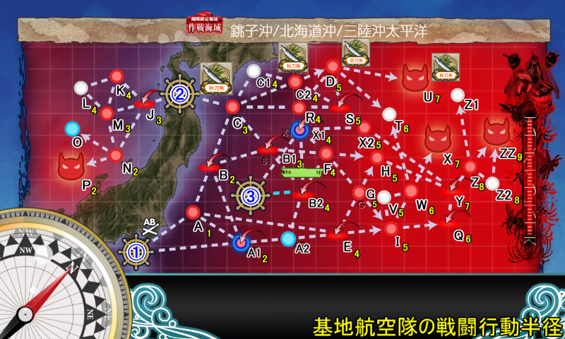 | Oマス (第一ボス) | 鹿島 Sheffield Gotland | 薄雲, 白雲, 秋霜 ,秋月 Z1, Z3, Jervis, Ташкент | 瑞穂 Commandant Teste |