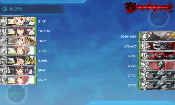 第三海域の第二ゲージは遊撃部隊での出撃で、欧州装甲空母棲姫との戦闘になります。