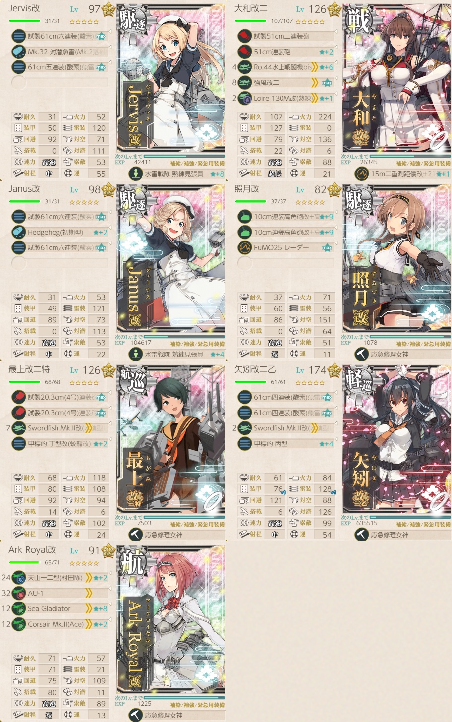 戦艦1空母1航巡1軽巡1駆逐3