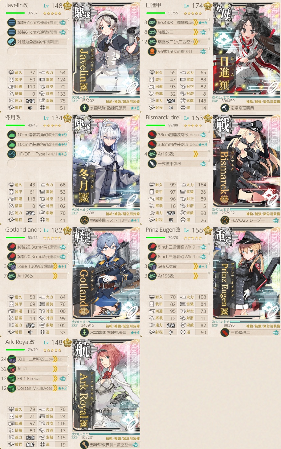 プリンツ/タシュケント/冬月/ビスマルク/Gotland/衣笠/アーク 全員メイン