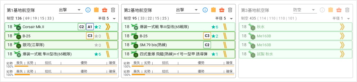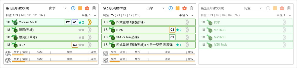 | 基地航空隊 | 3部隊使用可能・2部隊出撃可能 |