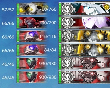 | 【装甲破砕】 [装甲-48]戦標船改装棲姫 各形態 [装甲-36]軽巡ツ級, 軽巡ト級flagship, 軽母ヌ級改elite, 駆逐ナ級IIe(量産型)elite, 潜水新棲姫flagship |