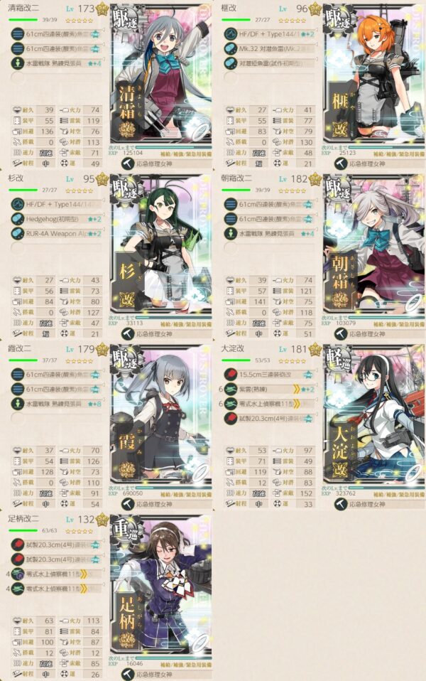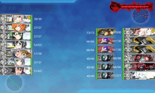 第四海域の第四ゲージは、遊撃部隊で「戦標船改装棲姫」率いる艦隊との戦闘になります。「礼号作戦」の各艦を採用して挑みましょう。