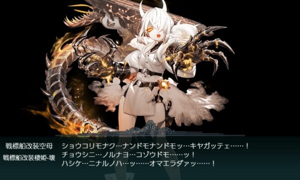| 【装甲破砕】 [装甲-48]戦標船改装棲姫 各形態 [装甲-36]軽巡ツ級, 軽巡ト級flagship, 軽母ヌ級改elite, 駆逐ナ級IIe(量産型)elite, 潜水新棲姫flagship |