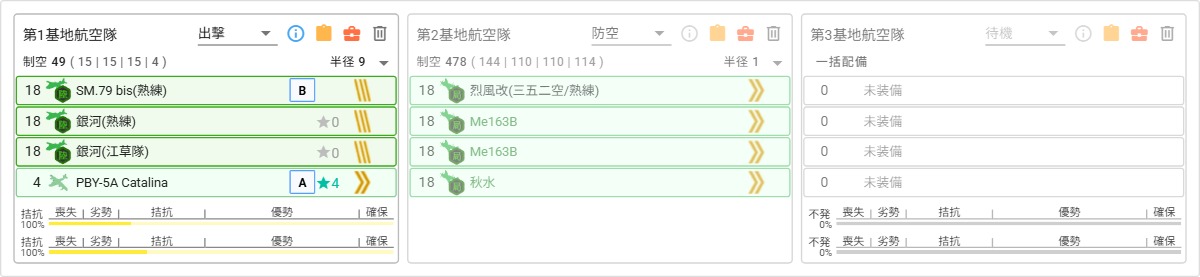 | 基地航空隊 | 2部隊使用可能・1部隊出撃可能 |