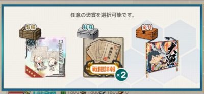 - 燃料弾薬鋼材1800,一九式大漁旗(家具),選択報酬に