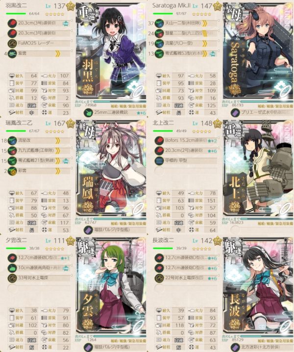 沖ノ島:妙高改二 モーレイ:妙高改ニ キス島:那珂改ニ
