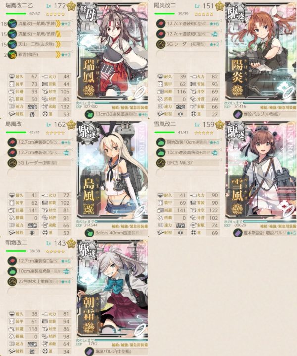 1-5を軽空1駆逐1海防2でクリアしても進行したので無理に駆逐4にする必要はなさそうですね