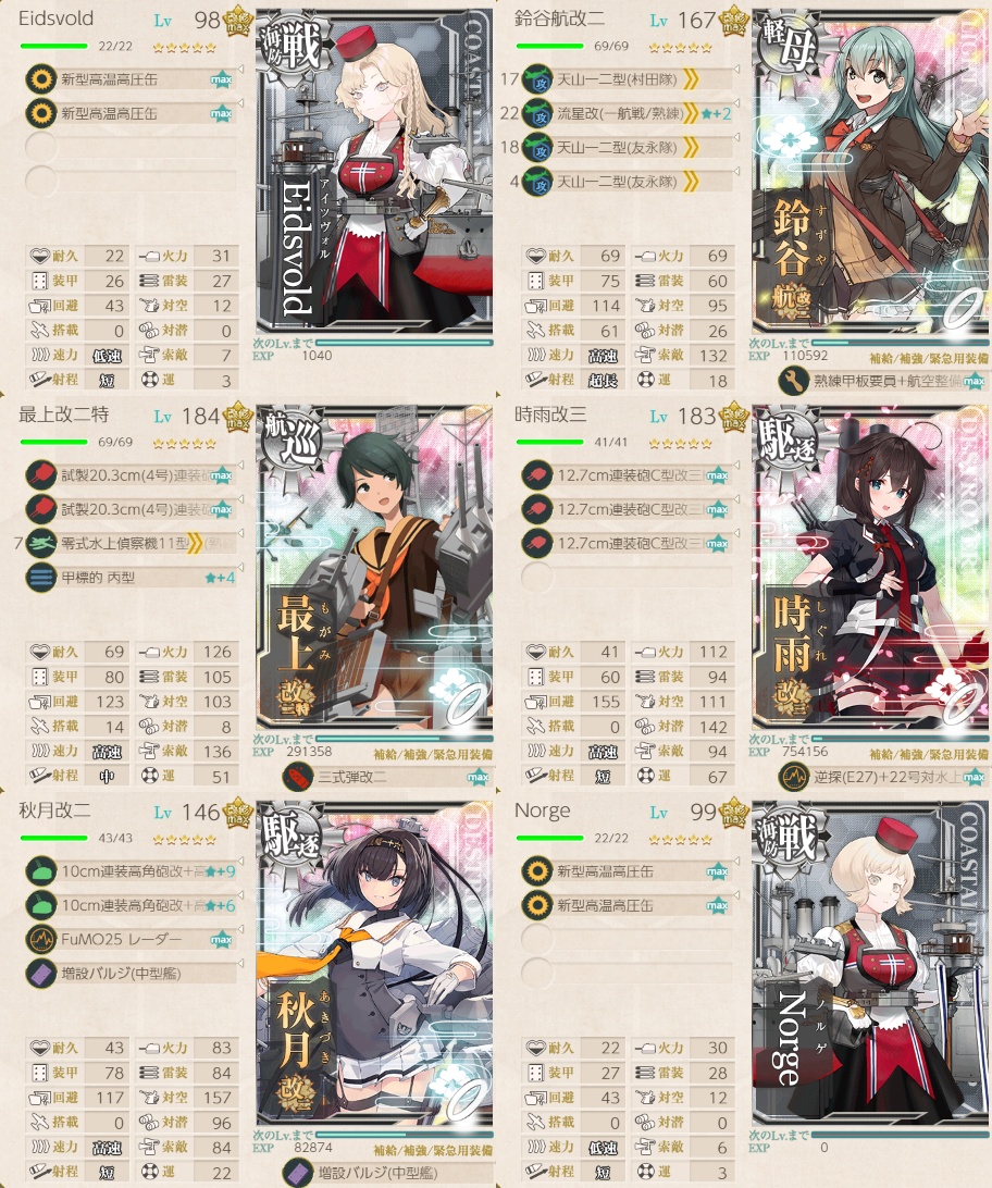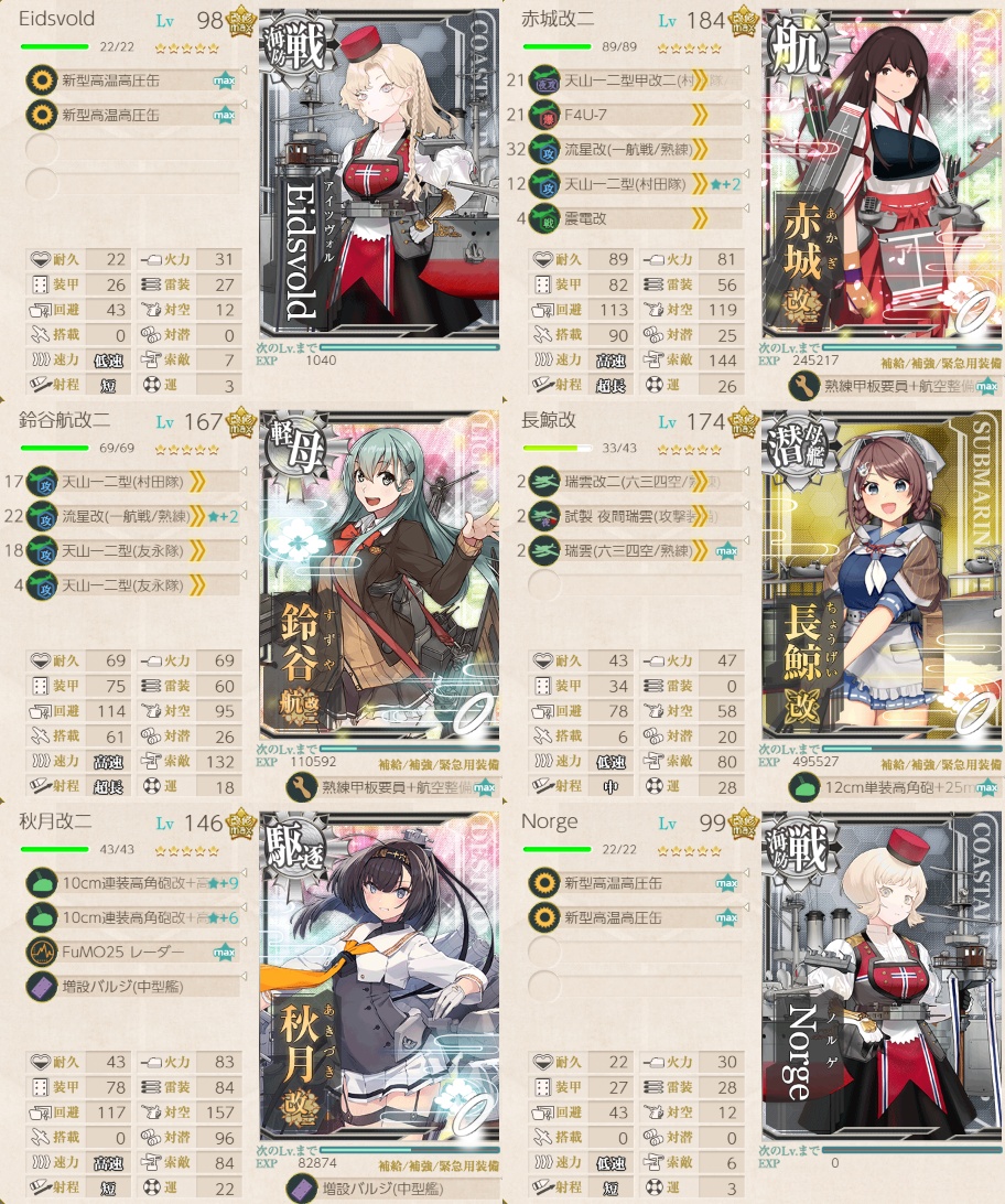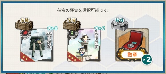 - 応急修理要員×2 or 改修資材3 or 新型兵装資材