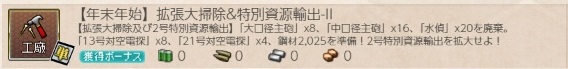 2025/12/27に実装された任務の一つ。年末年始恒例の期間限定任務で、最後の工廠任務です。