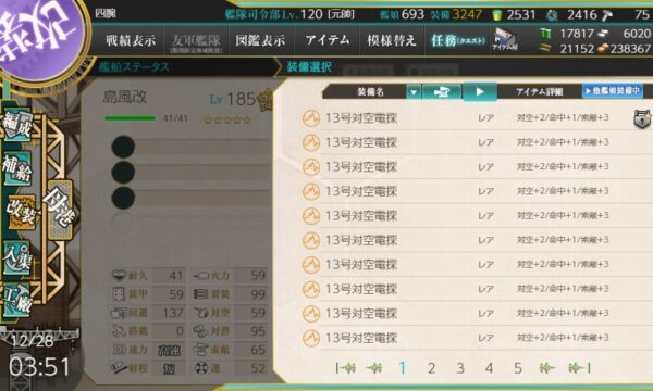 米潜水でのレシピは21号対空電探がでないので注意