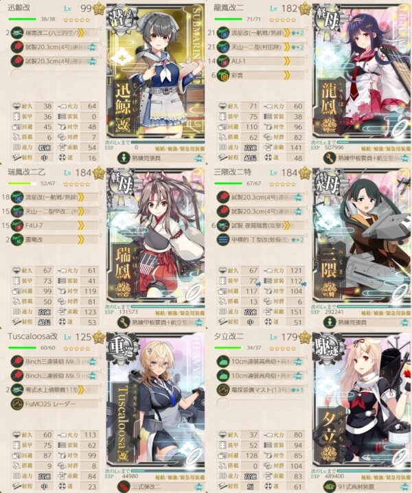 ※任務条件に迅鯨(旗艦), Tuscaloosa, 夕立を採用