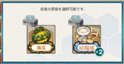 【週間拡張任務】秋の南瓜祭り! Buono! (出撃ウィークリー) | 南瓜1 or 釘12 南瓜1 or Ro.44水上戦闘機×2 or 海外技術1 |