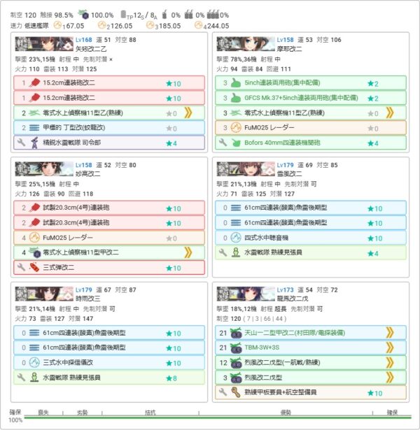 軽空1重巡2駆逐2水母1 ※道中ランダム ボス率95%程度