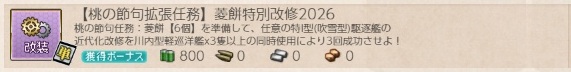 2026/03/02に実装された期間限定任務の一つ。近代化改修のウィークリー任務です。