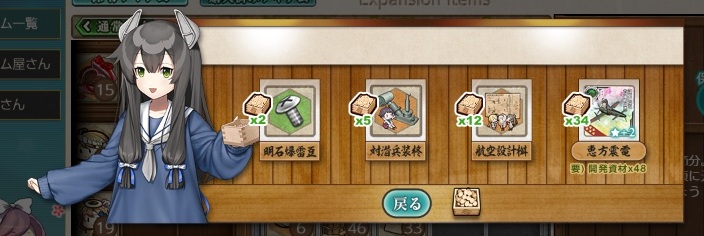 いまさらですが、今年の豆×2の交換先は 改修資材×1 だけでなく 九五式爆雷×1 も選択可能です
